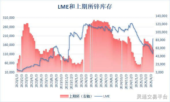 伦敦金属交易所(LME)公布数据显示,上周伦锌库存先降后增,4月15日库存降至逾一年新低,而后库存大幅回升,4月16日伦锌库存增近8万吨,最新库存水平为195,350吨,增至三个月新高。上期所公布的数据显示,4月18日当周,沪锌库存继续下降,周度库存减少8.26%至58,585吨,降至两个月新低。