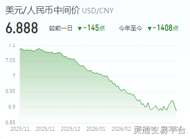 美元/人民币报6.8880,下调(人民币升值)145点; 欧元/人民币报7.9800,下调6点;